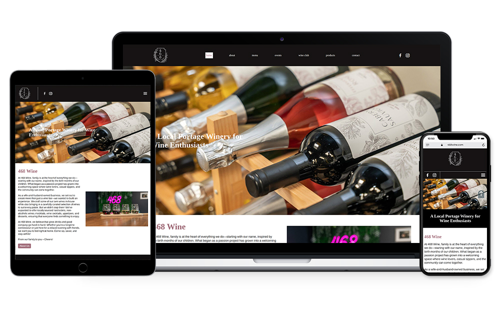 Blue Fire Media developed the website for 468 Wine, a cozy wine bar in Portage, Michigan. The site captures the essence of being inside 468 Wine’s welcoming atmosphere. highlighting their broad selection of house-crafted bottles, curated local wines, and refreshing ciders and mocktails. Included are dedicated pages for their full menu, wine club memberships, and a streamlined event=booking experience. Visitors of the site can also easily explore the the bar’s social calendar and learn about custom wine-label options designed for corporate gatherings or personal celebrations. Not to mention the site having vibrant photography, it does what it’s supposed to by inviting guests to relax, sip, and stay for a while. This website project showcases how Blue Fire Media can translate a brand’s unique story into an engaging digital platform. From a local business owned by a husband and wife to an inviting space where friends gather and memories are made, the site reflects 468 Wine’s identity and service excellence. If your business is ready for a distinctive online presence, then contact Blue Fire Media today.